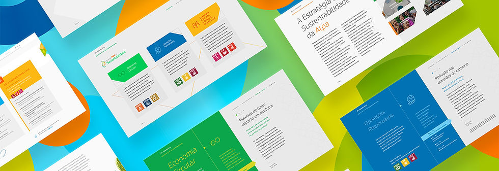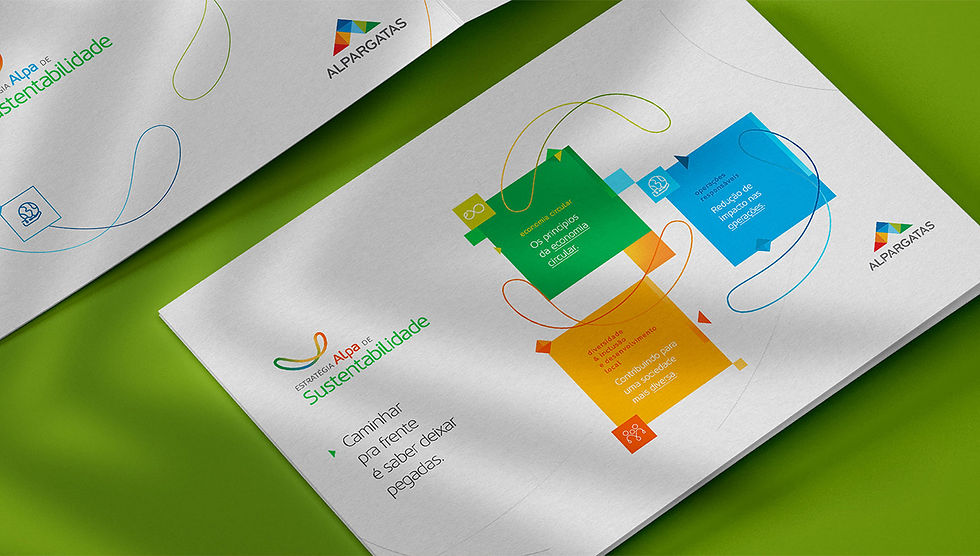 Identidade visual da Estratégia de Sustentabilidade da Alpargatas. Um projeto desenvolvido desde a concepção até a conclusão para comunicar no site, em documentos digitais e impressos da estratégia.